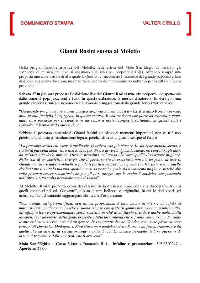 [Esempio] Lettere di proposta commerciale - Lettere di richiesta Usa la nostra lettera di proposta commerciale di esempio come modello per la tua lettera di proposta. Esempio 1 - Lettera di proposta commerciale non richiesta [Joanne Simpson] [Ristorazione ABC] [5678 Modo d'affari] [Baltimora, MD, 40006] [Data] [Giacomo bene] [Affari XYZ] [220 Georgetown Street] [Washington, DC, 20008] Caro signor Fine: Carmen Moretti: "Le donne hanno la sensibilità per poter lavorare al ... 10 ottobre 2022 05:00 Carmen Moretti: "Le donne hanno la sensibilità per poter lavorare al meglio nel mondo dell'ospitalità" Carmen Moretti, Amministratore Delegato de L'Albereta e ... Modello di lettera di presentazione: esempi e consigli Scegline un paio e inseriscile nella lettera di presentazione; se possibile, accompagnale con un esempio. Inserisci nella tua lettera di presentazione i tratti della tua personalità che sono in linea con la filosofia e la mission dell'azienda. Puoi trovare le informazioni necessarie sul sito web dell'azienda e nell'annuncio di lavoro. Potere al Popolo - LETTERA DI UNA LAVORATRICE DELLO SPETTACOLO LETTERA DI UN LAVORATORE DELLO SPETTACOLO In queste settimane di emergenza sanitaria per molti lavoratori del settore della cultura e dello spettacolo...
