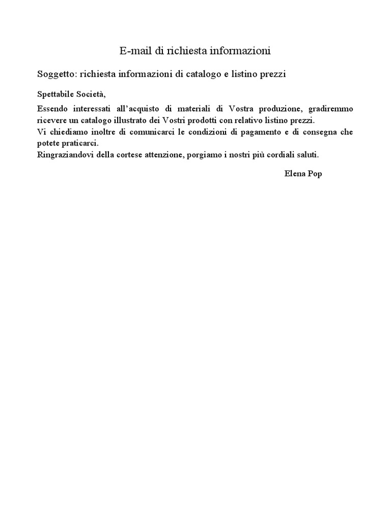 Come scrivere lettera di disdetta: recesso da contratti abbonamenti Quanto la società riceverà la lettera, se tutti i dati sono corretti, provvederà alla sospensione del servizio entro i termini previsti dal contratto, generalmente lo farà entro 15 o 30 giorni. Questo dipende dalla data in cui riceverà la tua lettera. Come scrivere una lettera formale esempio | Soldioggi 1- Intestazione: ossia i dati completi del tuo destinatario, va posta in alto a destra della pagina. Se ti rivolgi a un'azienda oppure ad un professionista, puoi scrivere Spett. le + il nome dell'Azienda o professionista. 2- Alla cortese attenzione di _________ Va scritto il nome della persona a cui stai scrivendo. servizi2.inps.it › servizi › CircMessStdINPS - Circolare numero 76 del 30-06-2022 Jun 30, 2022 · Su richiesta delle Amministrazioni interessate, con decreto del Ministro per il lavoro e la previdenza sociale, sentito il Comitato di cui all'art. 7 del decreto legislativo luogotenenziale 9 novembre 1945, n. 788, le imprese industriali degli enti pubblici possono essere assoggettate all'applicazione delle norme sulla integrazione dei guadagni ... Fac Simile Lettera di Presentazione Catalogo Prodotti In questa pagina è possibile trovare un fac simile lettera di presentazione catalogo prodotti da scaricare e compilare. Lettera di Presentazione Catalogo Prodotti La lettera di presentazione del catalogo prodotti e la lettera con cui si accompagna l'invio del proprio catalogo prodotti a un potenziale cliente.