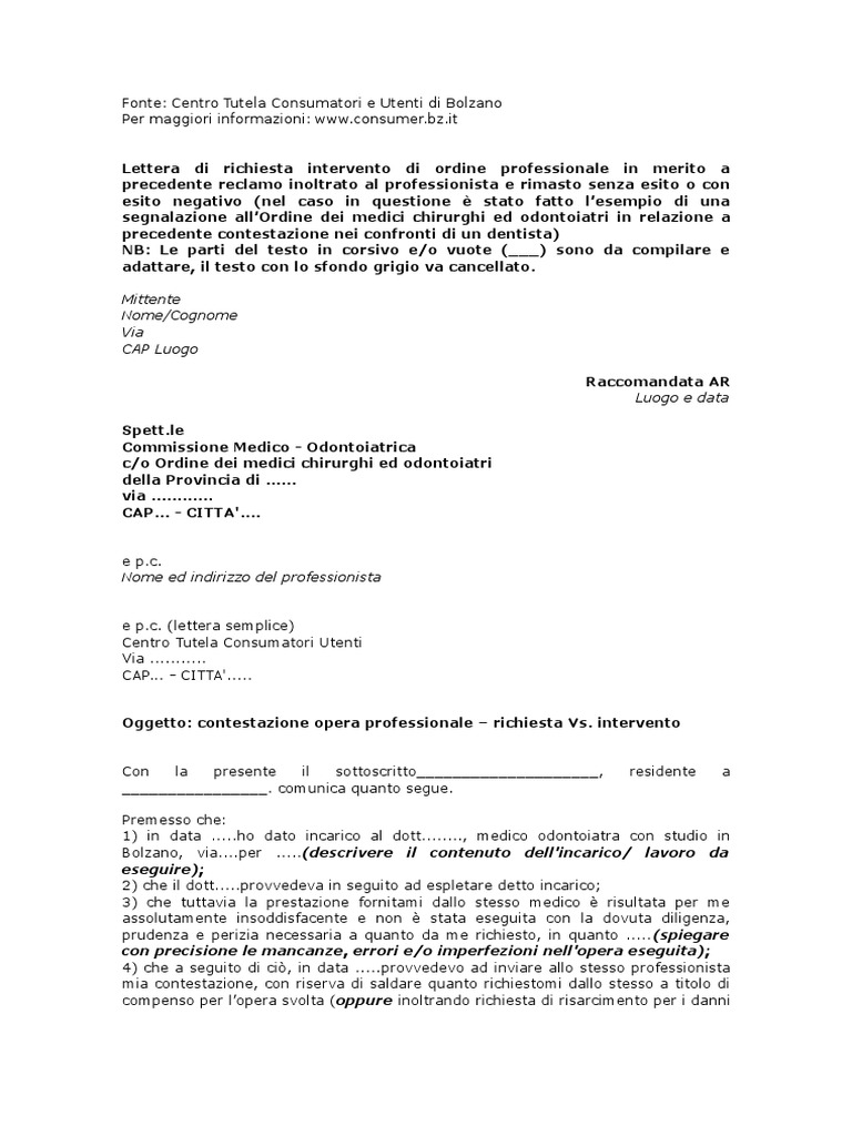 Lettera reclamo fac simile